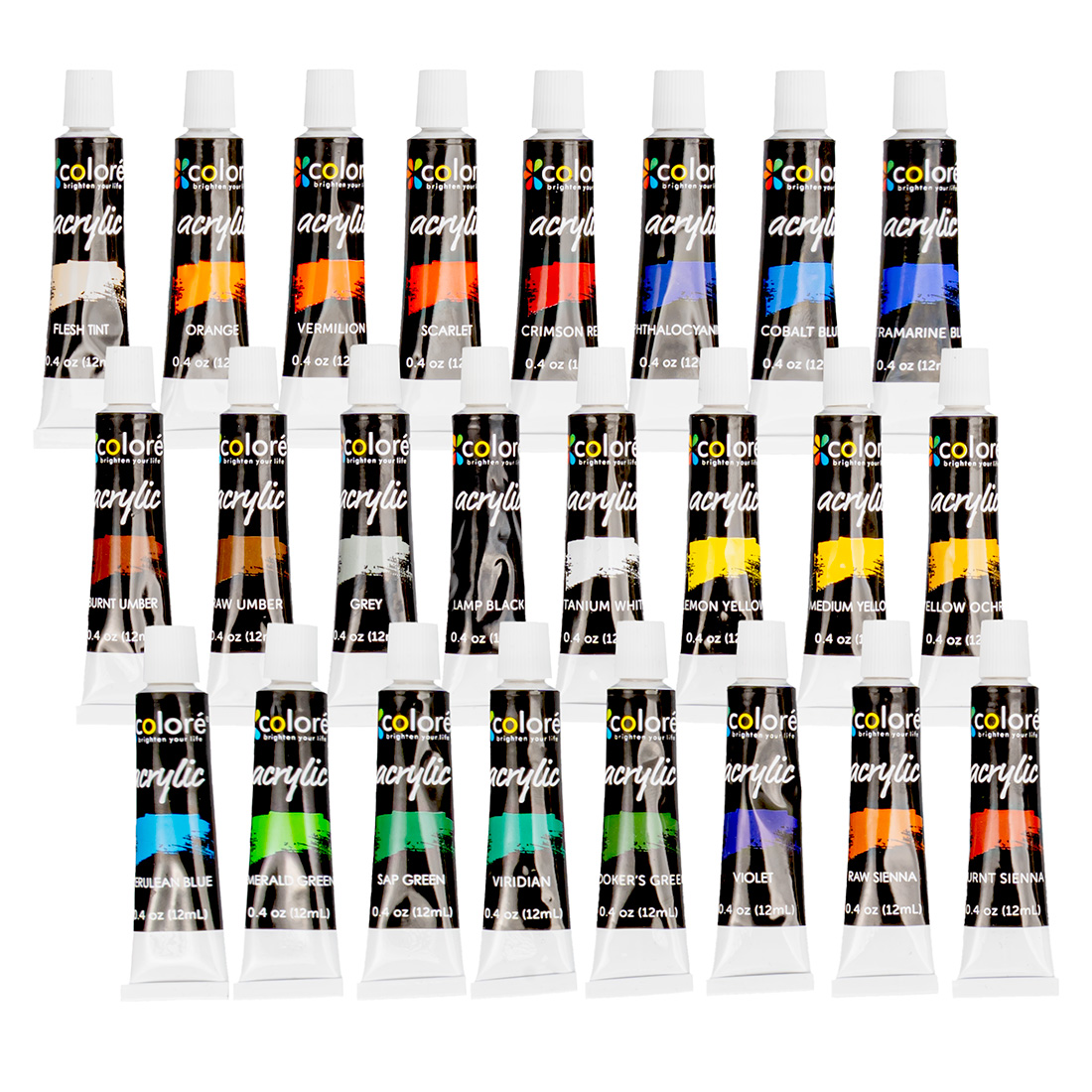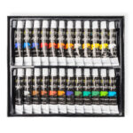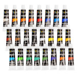 Każdy z 24 kolorów znajduje się w aluminiowej tubce o pojemności 12 ml. Umożliwia to dozowanie farby i resztę chroni przed wysychaniem.