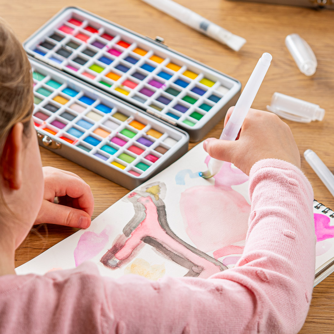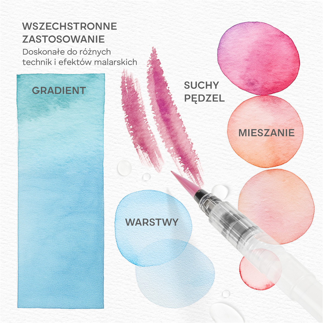 • Łatwe w użyciu – wystarczy pędzel wodny i odrobina wody, by uzyskać efekt akwareli.