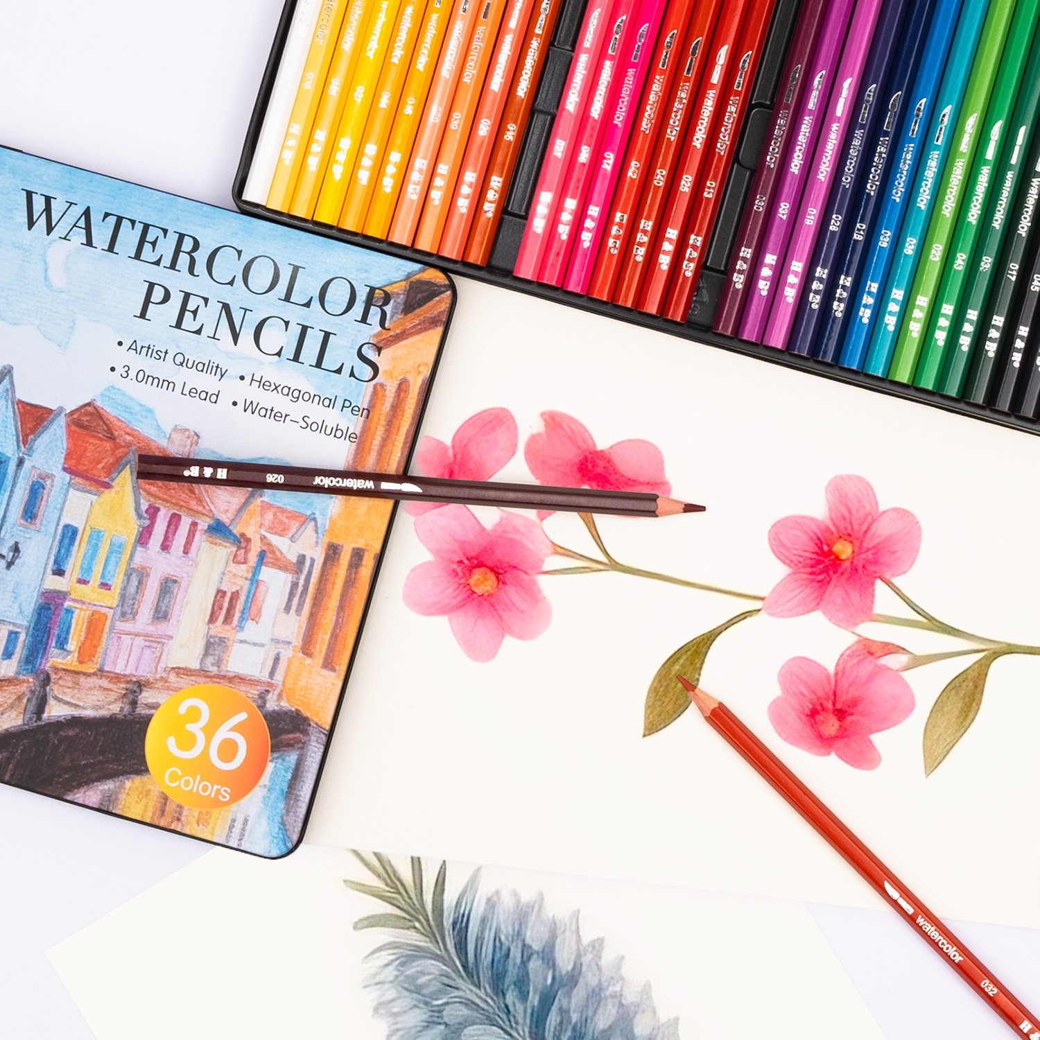 Kredki Akwarelowe Zestaw w Metalowym Opakowaniu z pędzelkiem 36 KOLORÓW