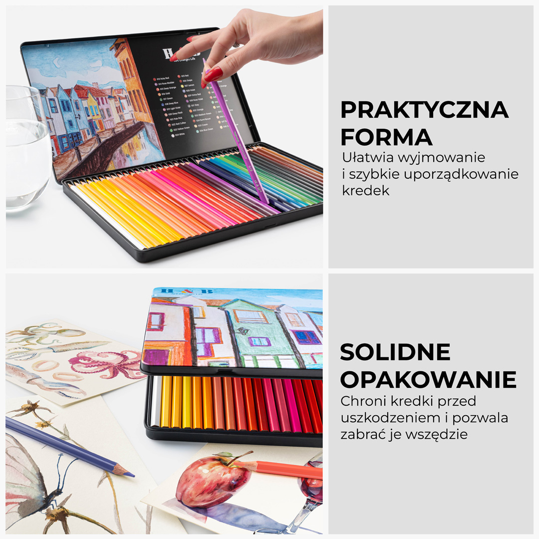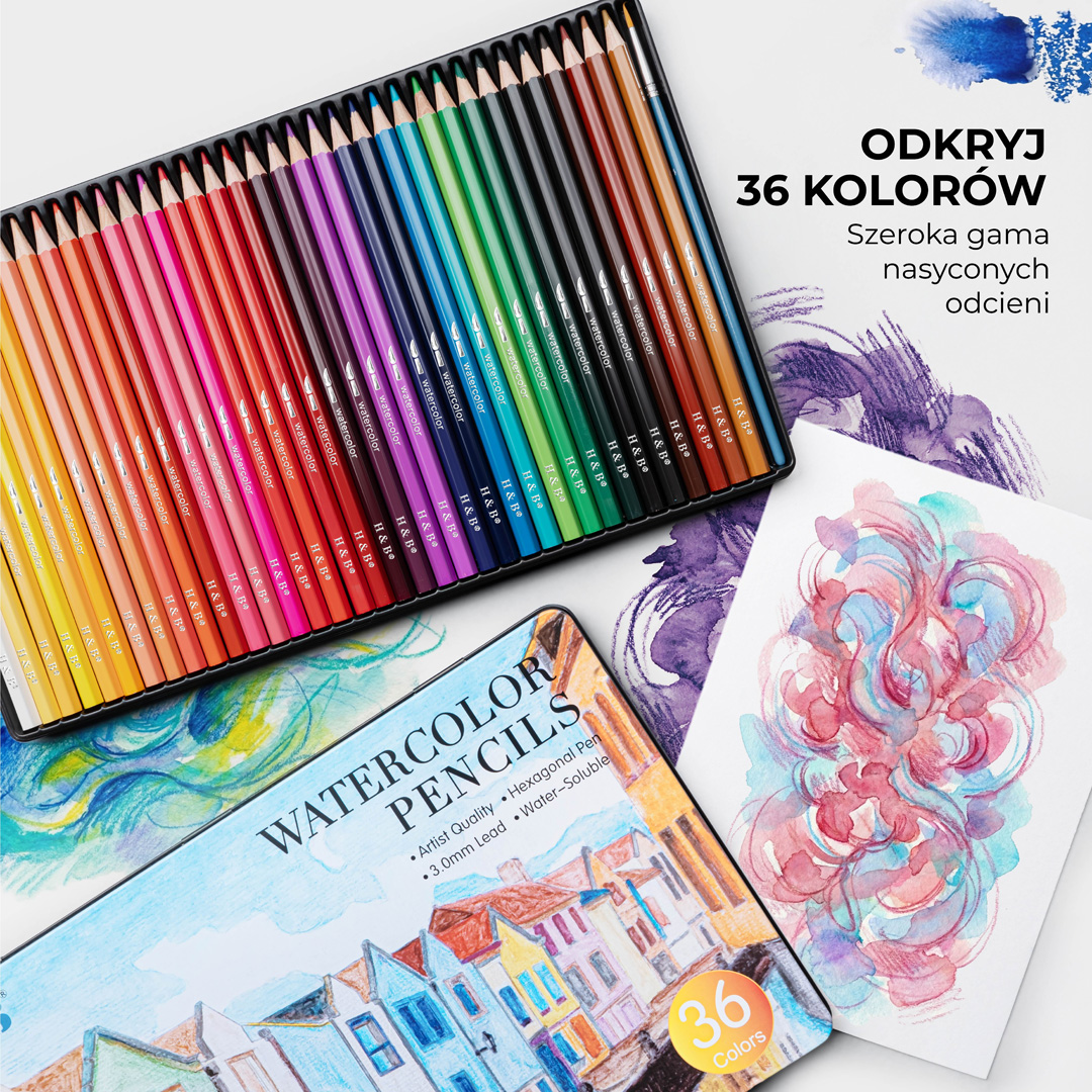 Zestaw 36 kredek akwarelowych w metalowym etui, który pozwala płynnie łączyć rysunek z efektami malarskimi przy użyciu wody. Wysoka zawartość pigmentu gwarantuje soczyste barwy, a dołączony pędzelek umożliwia tworzenie miękkich przejść tonalnych. Idealne rozwiązanie dla osób szukających kreatywności bez bałaganu na stanowisku pracy.