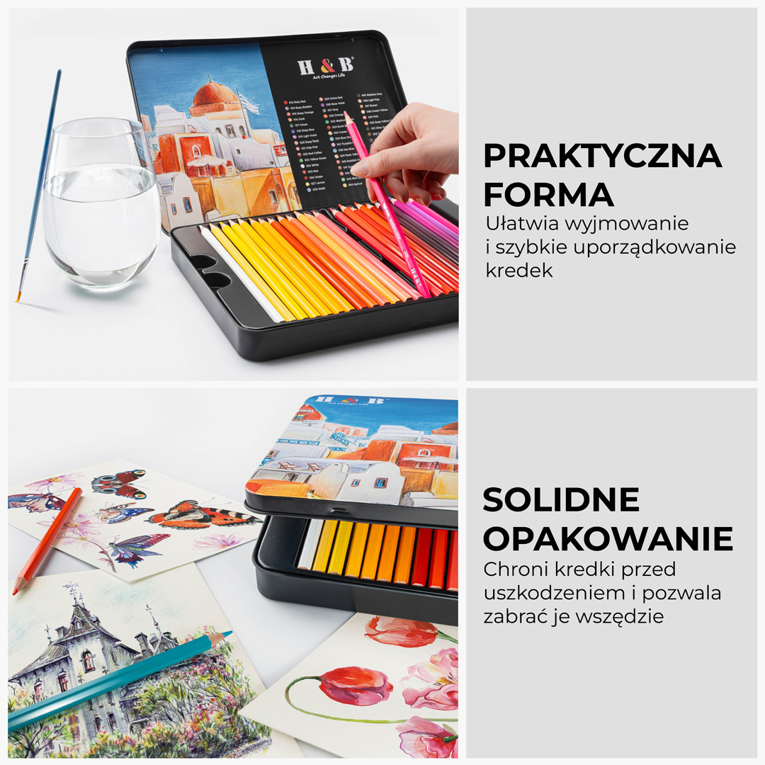 - Idealne dla artystów różnego stopnia zaawansowania – zarówno początkujący, jak i zaawansowani artyści docenią jakość kolorowych kredek. Zestaw do malowania jest doskonały zarówno dla dzieci, które chcą rozwijać swoją kreatywność, jak i dla doświadczonych artystów, szukających wysokiej jakości narzędzi.