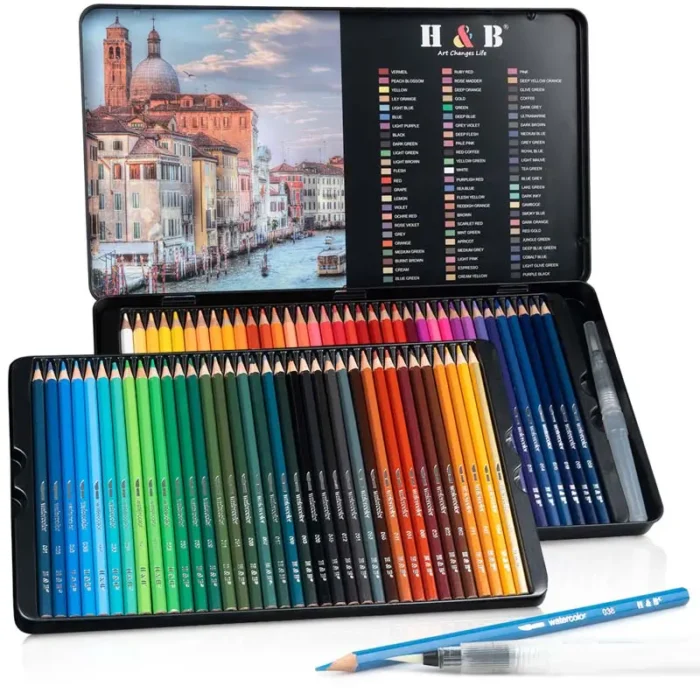 Zapraszamy do eksplorowania bogatej palety kolorów przy użyciu kompletnego zestawu 72 profesjonalnych kredek akwarelowych. To przybory do malowania dla tych, którzy chcą przenieść swoje artystyczne pomysły na papier, niezależnie od poziomu zaawansowania.