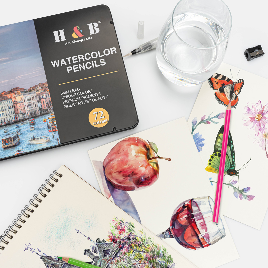 Kredki Akwarelowe Zestaw Kredek 72 Kolorowe Kredki + Pędzel Do Akwareli