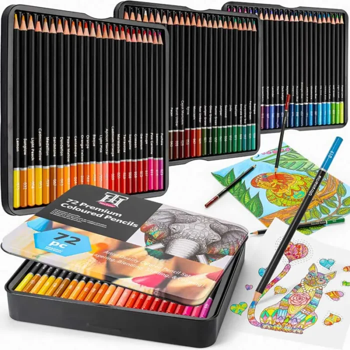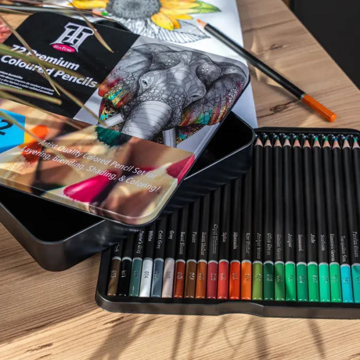 Kredki Ołówkowe Premium 72 sztuki w Metalowym Piórniku