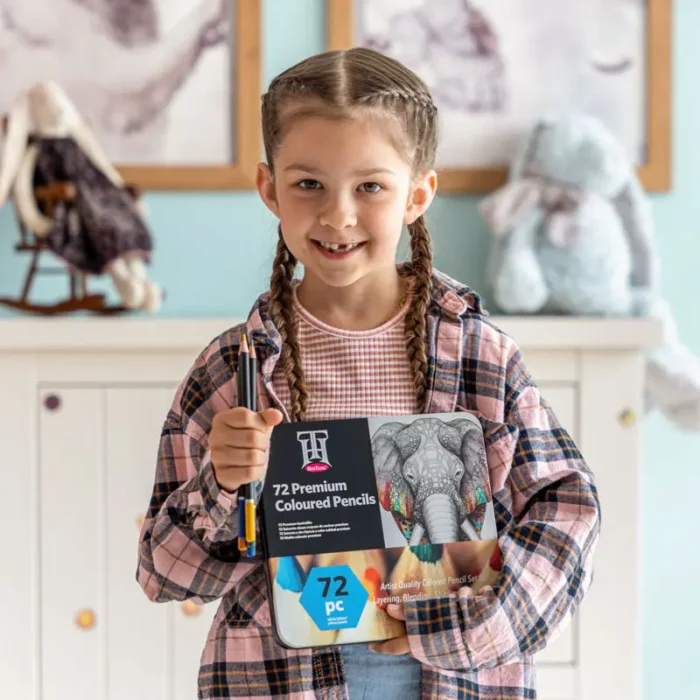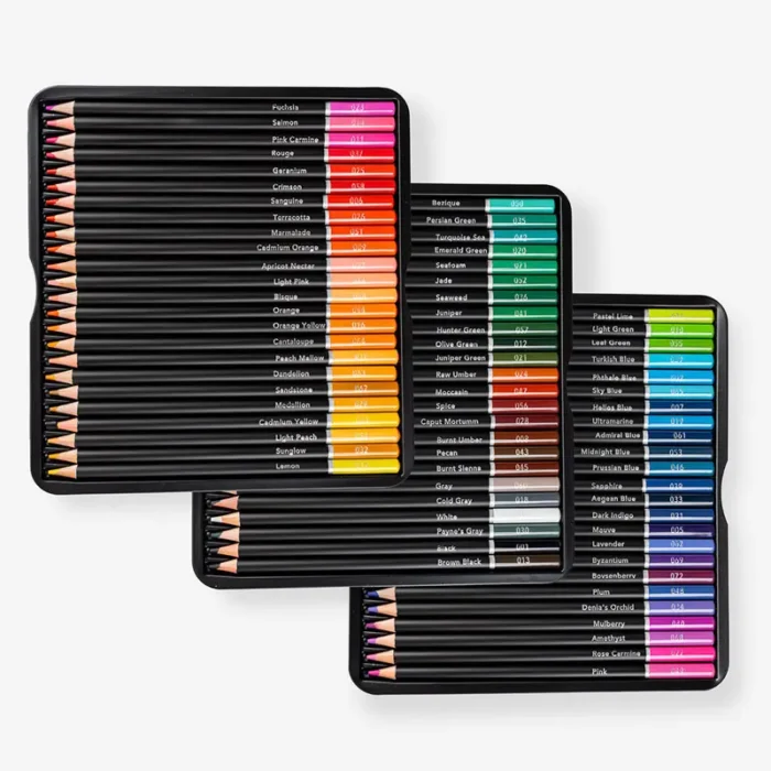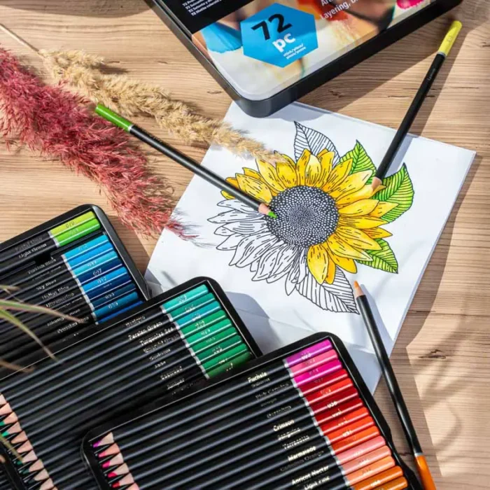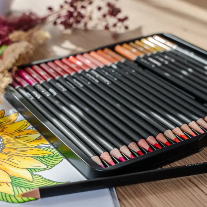 Zestaw profesjonalnych, miękkich kredek ołówkowych dla dzieci i dorosłych o szerokiej palecie kolorów charakteryzujący się miękką kremową teksturą. Kredki Ołówkowe łatwo się mieszają i nakładają kolejne warstwy kolorów.