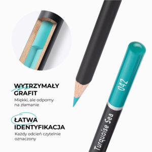 Koniec z szukaniem właściwego odcienia. Każda kredka ma czytelny numer i nazwę koloru, dzięki czemu praca idzie szybko i sprawnie.