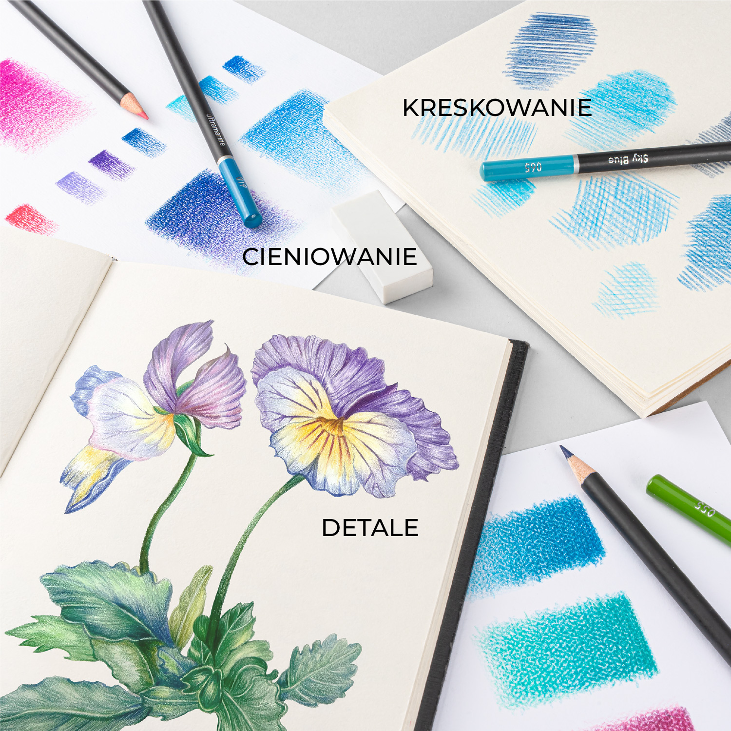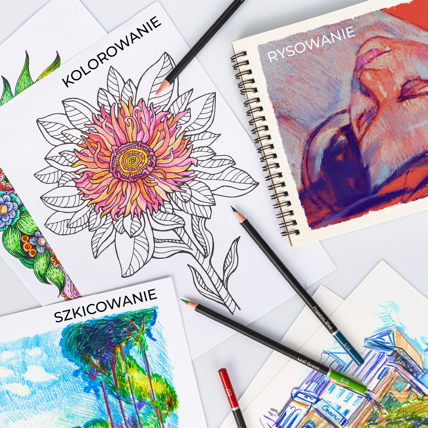 Te kredki dają Ci pełną swobodę artystyczną i sprawdzą się w każdej technice. Wykorzystaj je do: