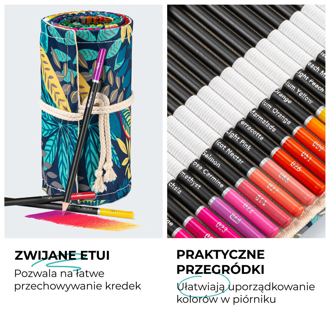 Nie tylko chroni ono kredki, ale także ułatwia organizację i pozwala zabrać Twoje przybory ze sobą, by tworzyć gdziekolwiek i kiedykolwiek zechcesz.