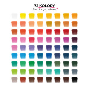 Zachwyci Cię aksamitna, kremowa tekstura 72 kredek, które z łatwością rozprowadzają się po kartce, pozwalając na cieniowanie i idealne łączenie barw.