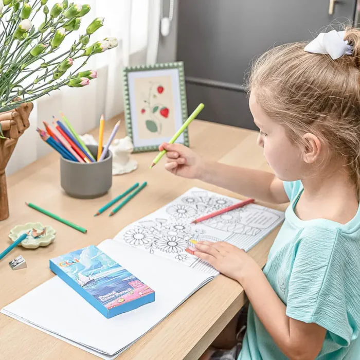 Wspomaga rozwój motoryki małej – rysowanie i kolorowanie wzmacniają mięśnie dłoni, co jest niezwykle ważne w nauce pisania.