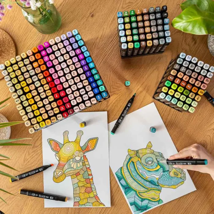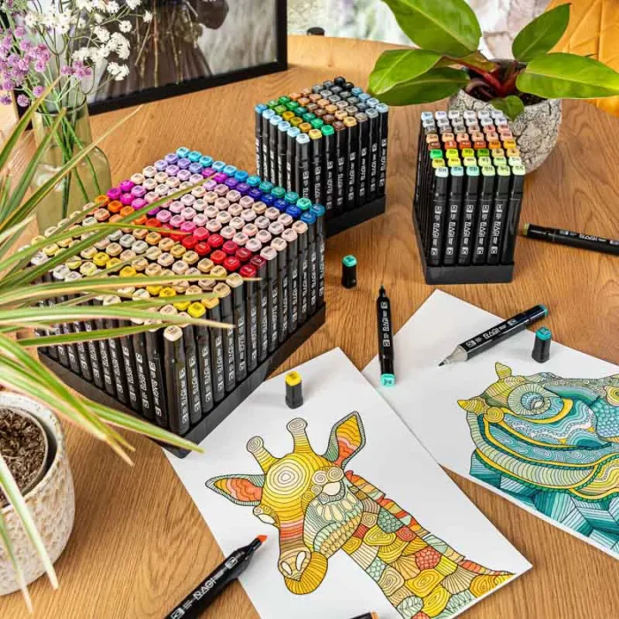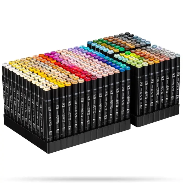 Markery Alkoholowe 262 sztuk Dwustronne – duży zestaw zestaw dla profesjonalnych rysowników oraz hobbystów. Dzięki wysokiej jakości tuszom alkoholowym, markery zapewniają gładkie i precyzyjne pokrycie, umożliwiając tworzenie zarówno prostych szkiców, jak i złożonych ilustracji.