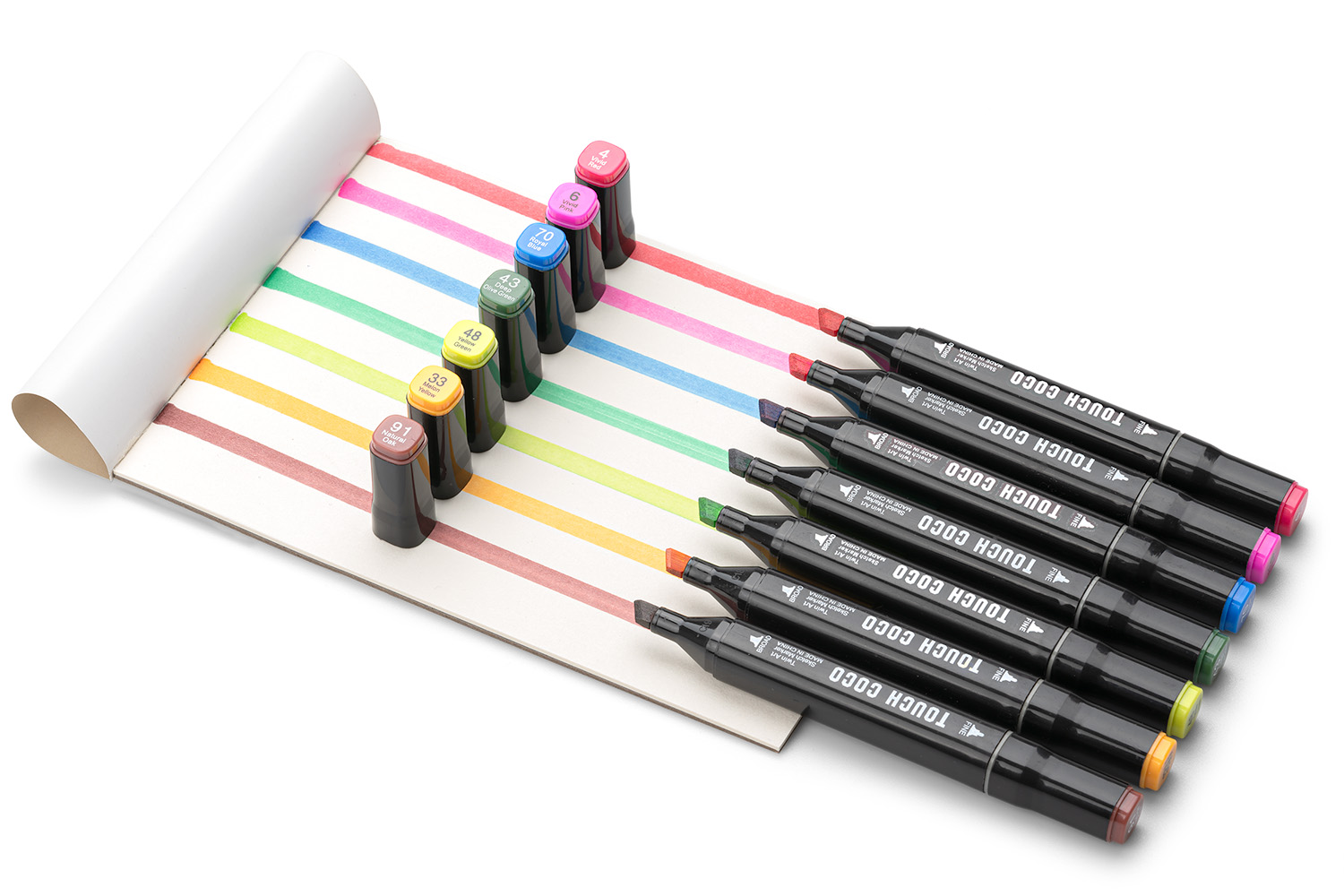 Dobrej jakości pigment oraz duża liczba kolorów dają wiele możliwości podczas tworzenia ilustracji. Każdy promarker charakteryzuję się indywidualnym odcieniem.