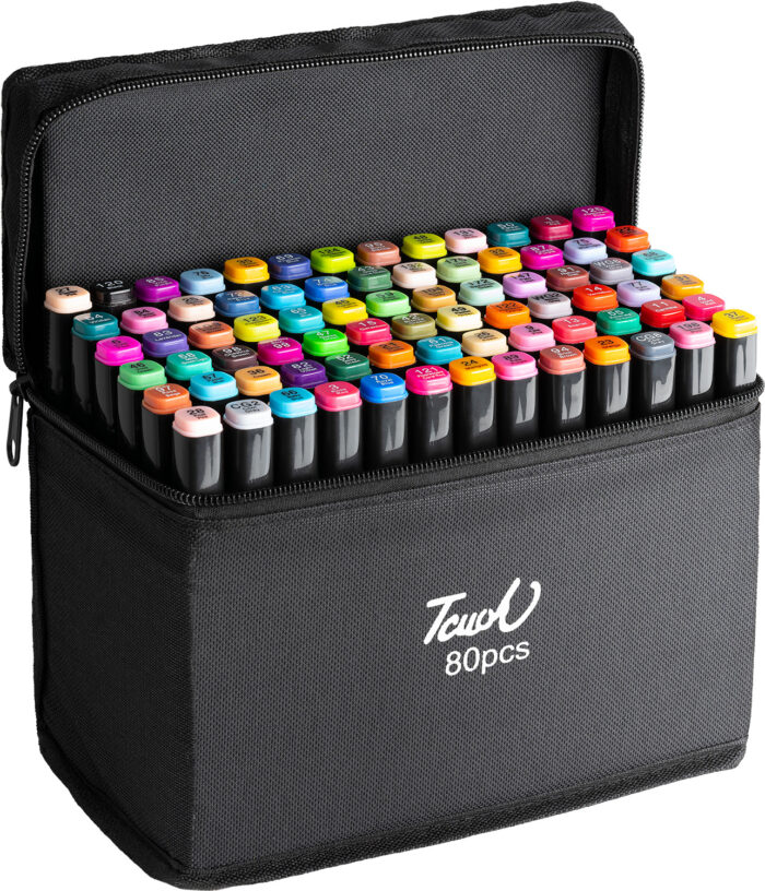 Dwustronne markery alkoholowe w zestawie 80 intensywnych kolorów idealnie sprawdzą się do kolorowania, projektowania i ilustracji. Wyposażone w cienką i grubą końcówkę, umożliwiają precyzyjne rysowanie i cieniowanie.