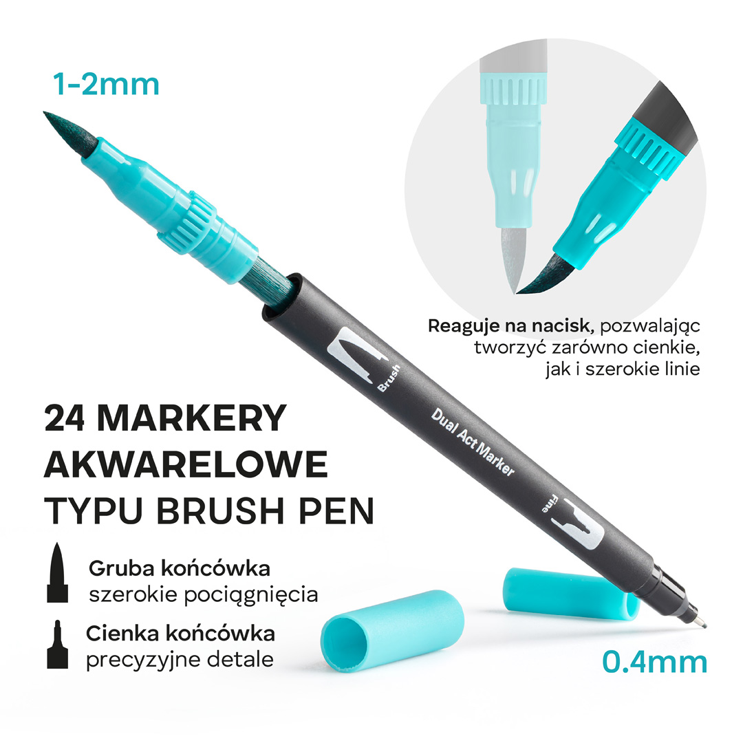 Nasz zestaw 24 dwustronnych markerów akwarelowych to wszystko, czego potrzebujesz, by zacząć! Stworzyliśmy go z myślą o każdym – niezależnie od umiejętności i doświadczenia.