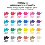 Zanurz się w świecie kolorów! Zestaw zawiera 24 żywe, intensywnie napigmentowane odcienie, które ożywią każdy projekt.