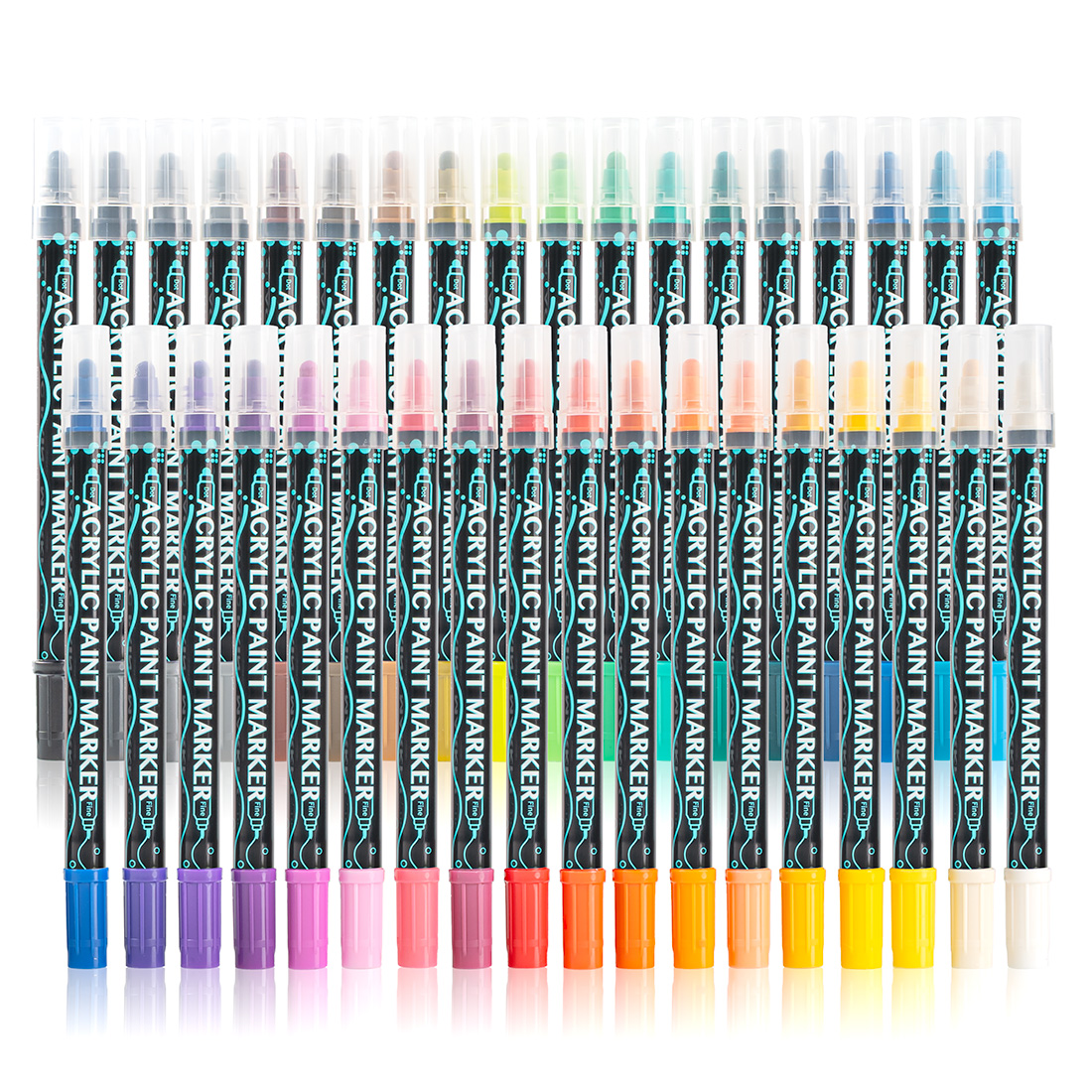 Markery Akrylowe Pisaki Mazaki Dwustronne Wodoodporne 36 szt. + 3 Kamienie do Malowania