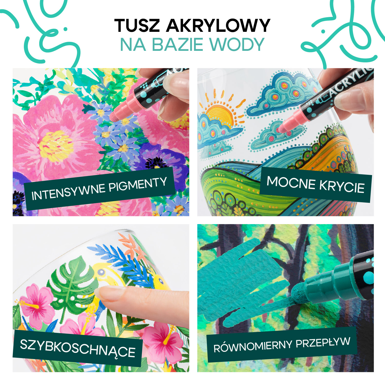 Zapomnij o ograniczeniach! Nasze markery akrylowe zostały stworzone do pracy na wielu różnych materiałach.