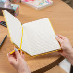 Nasza książka do notowania w solidnej okładce z imitacji skóry to stylowy i użyteczny element ułatwiający codzienne notowanie myśli, pomysłów oraz istotnych informacji.