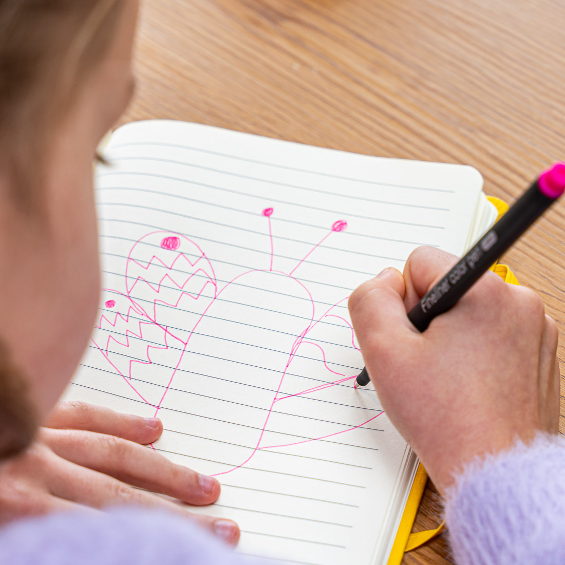 - Format A5: Dzięki optymalnemu rozmiarowi A5, notatnik jest poręczny i łatwy w przenoszeniu, oferując wystarczającą przestrzeń do zapisywania pomysłów i refleksji.