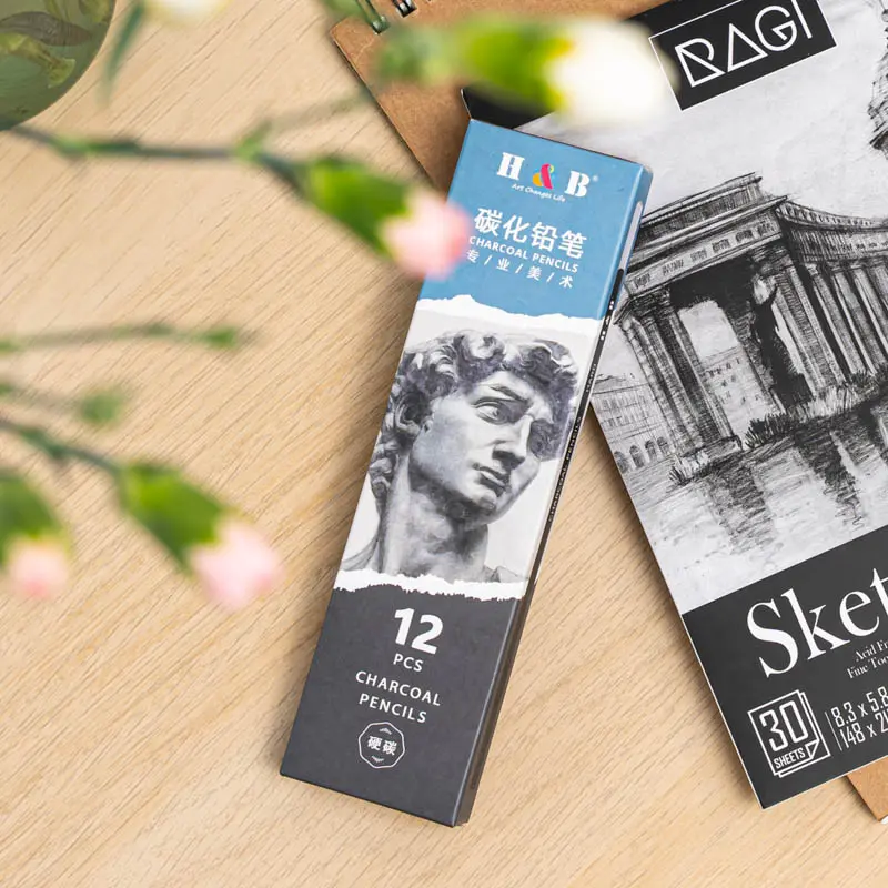 Zestaw Ołówków Węglowych MEDIUM 12 sztuk