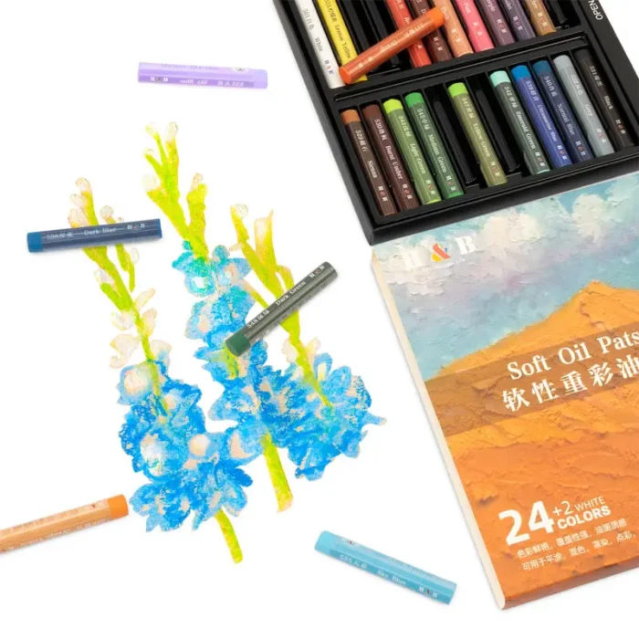 • Trwałość – dzięki wysokiej jakości pigmentu, kolory nie blakną z czasem, zachowując swoje intensywne odcienie. Sprawiają, że kolory są trwałe, a obrazy malowane pastelami olejnymi utrzymują swoją wyrazistość przez długi czas.