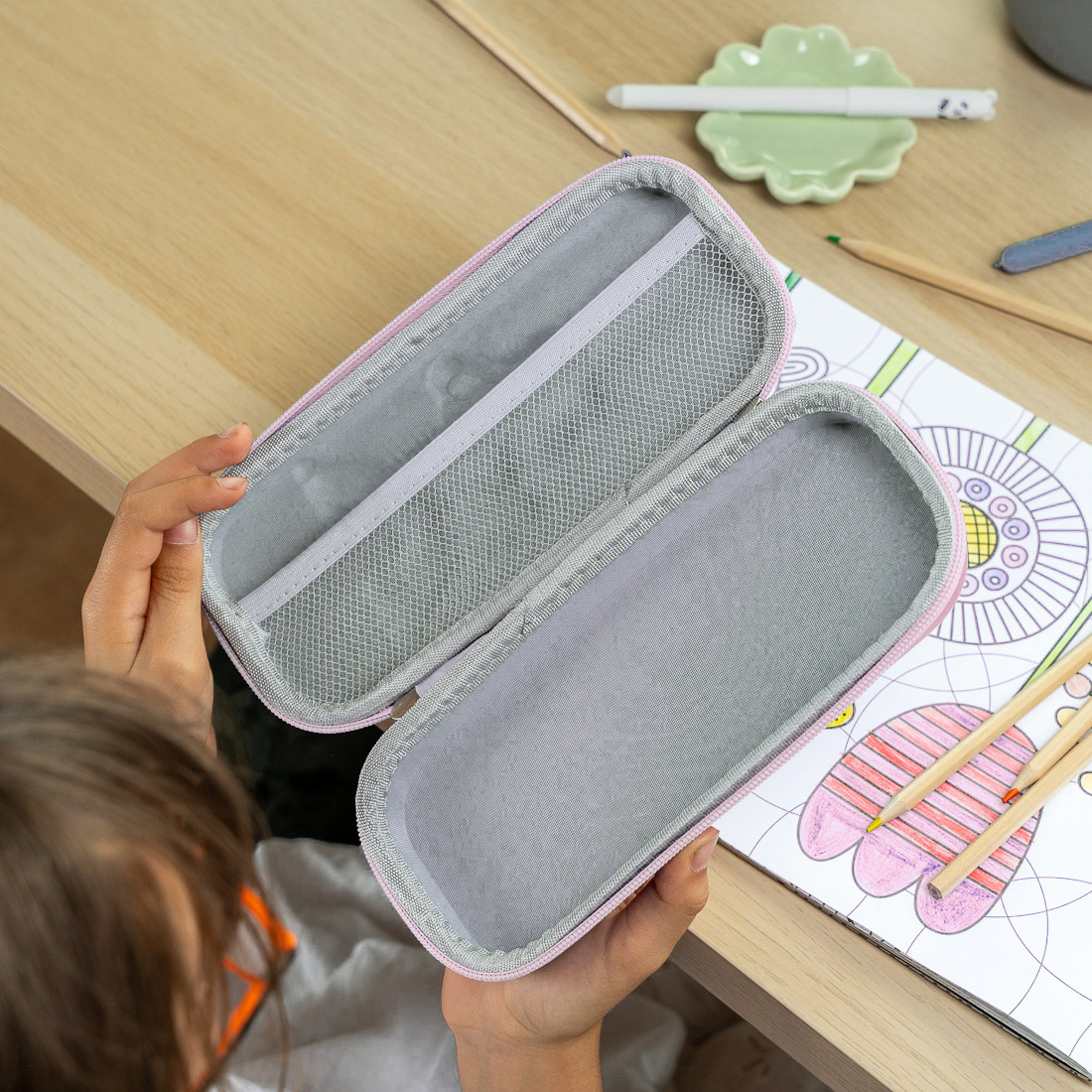 - SIATECZKA WEWNĄTRZ PIÓRNIKA – wnętrz piórnik wyposażony jest w praktyczną siateczkę, która pomaga w organizacji mniejszych przedmiotów, takich jak temperówki czy gumki do mazania. Dzięki przemyślanemu układowi, wszystkie niezbędne przybory mają swoje miejsce, co sprawia, że codzienne korzystanie z nich jest wygodne i uporządkowane.