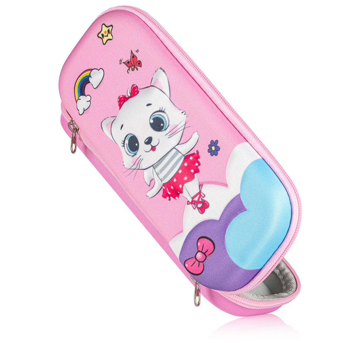 Piórnik szkolny z uroczym motywem Kotki Baletnicy to połączenie funkcjonalności z bajkowym designem, który z pewnością zachwyci każdą małą miłośniczkę tańca i kotków. Praktyczne wnętrze pozwala na uporządkowanie wszystkich niezbędnych przyborów szkolnych, a efektowny trójwymiarowy wzór dodaje całości wyjątkowego charakteru.