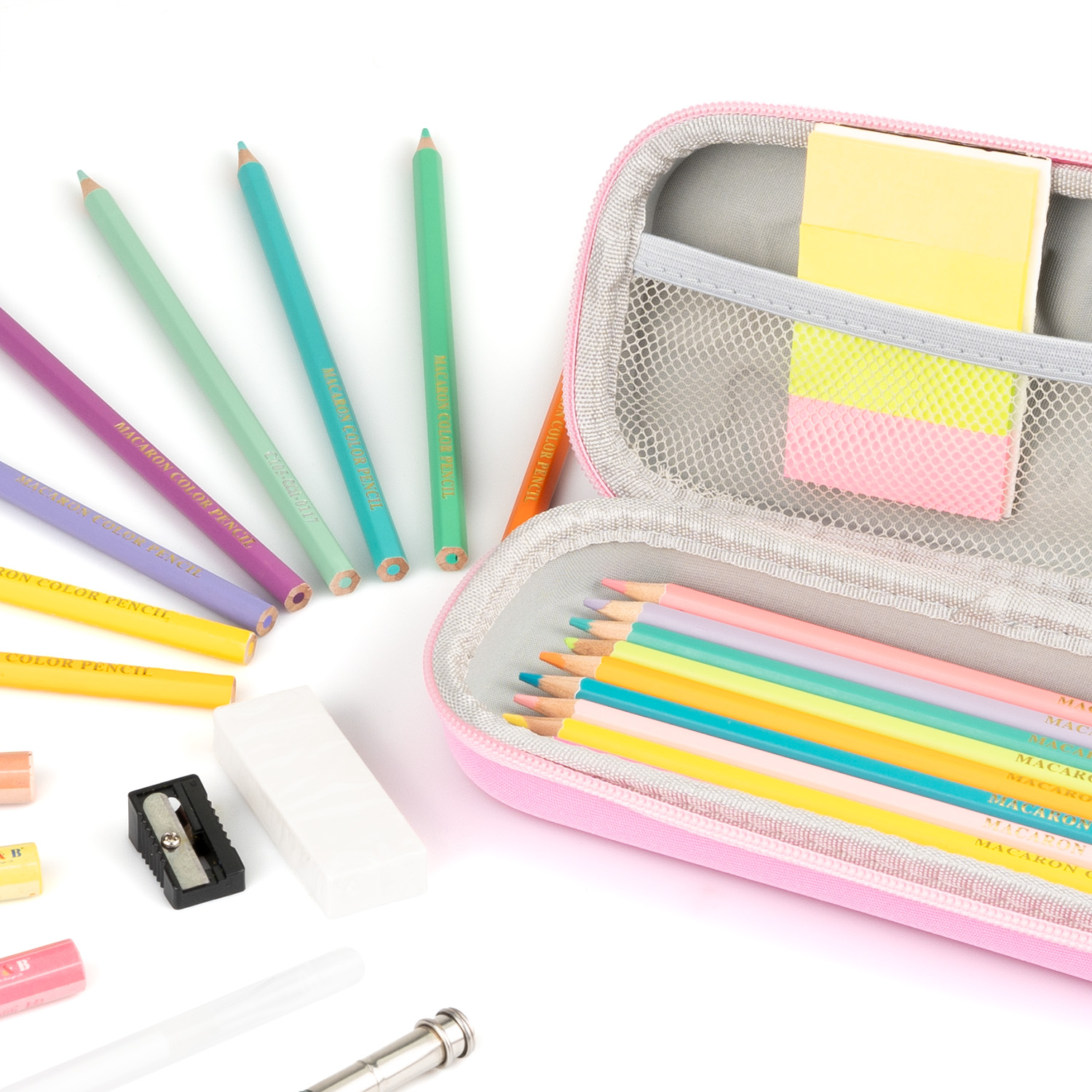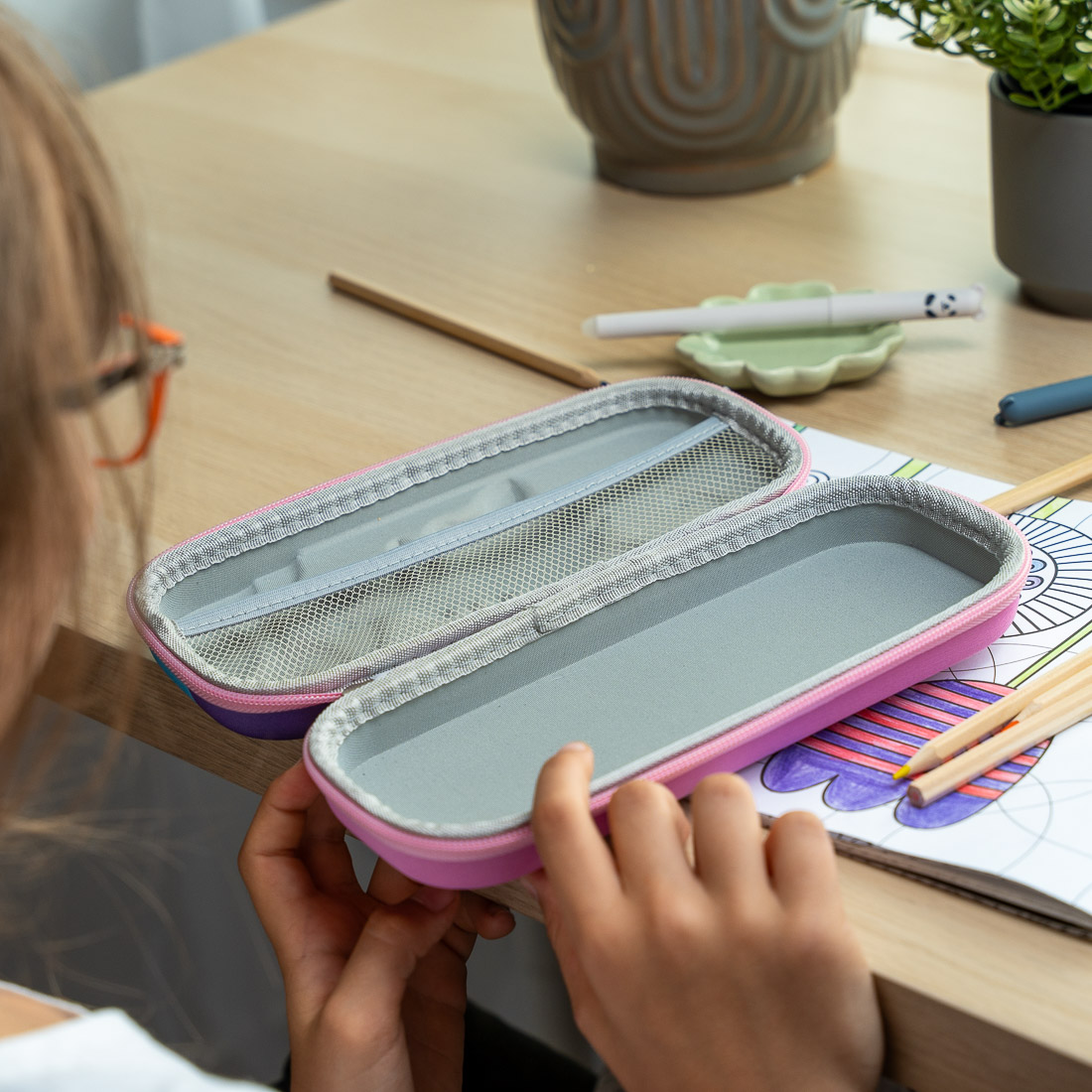 • SIATECZKA WEWNĄTRZ PIÓRNIKA – wnętrz  piórnik wyposażony jest w praktyczną siateczkę, która pomaga w organizacji mniejszych przedmiotów, takich jak temperówki czy gumki do mazania. Dzięki przemyślanemu układowi, wszystkie niezbędne przybory mają swoje miejsce, co sprawia, że codzienne korzystanie z nich jest wygodne i uporządkowane.