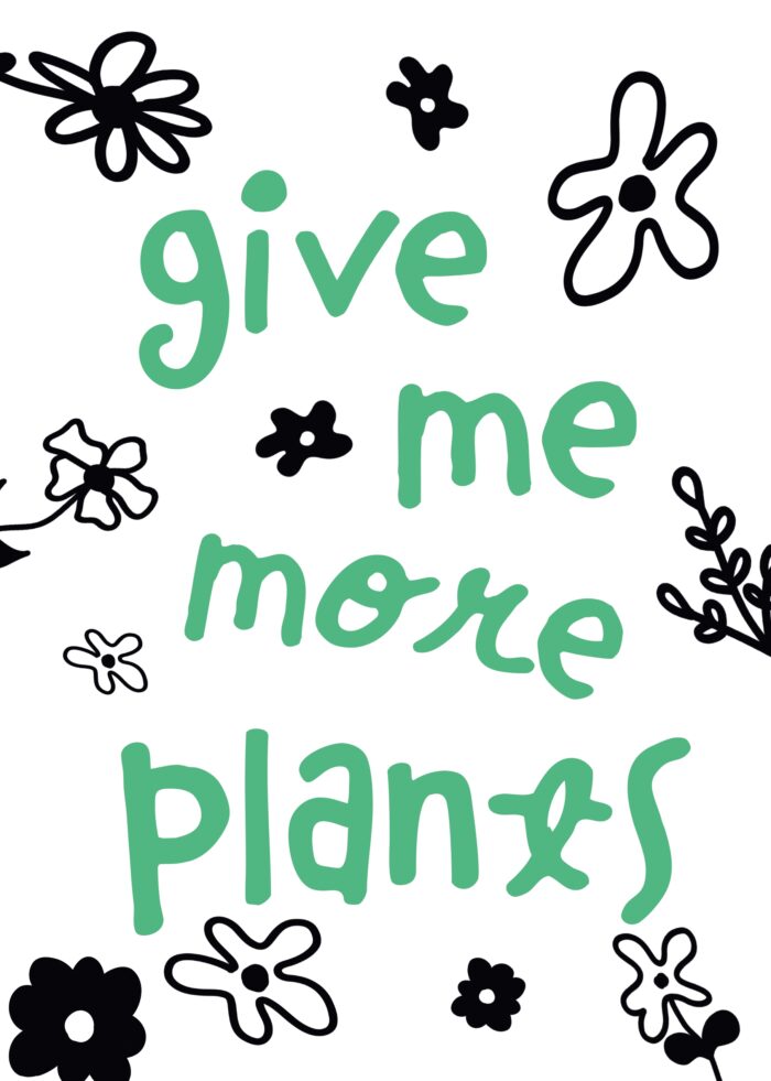 Szukasz sposobu, by wyrazić swoją miłość do zieleni? Plakat „Give Me More Plants” to idealna dekoracja ścienna dla wszystkich plant loverów! Zabawna, ręcznie stylizowana typografia w połączeniu z lekkimi, czarno-zielonymi ilustracjami roślin i kwiatów tworzy świeży, nowoczesny klimat. Plakat doskonale wpasuje się w estetykę boho, urban jungle, minimal lub eco-friendly.
