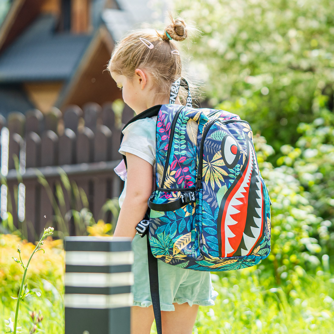 Kolorowy nadrukplecak do szkoły z unikalnym, żywym wzorem rekina sprawia, że codzienna nauka staje się jeszcze przyjemniejsza. Modny design przypadnie do gustu zarówno chłopcom, jak i dziewczynkom.