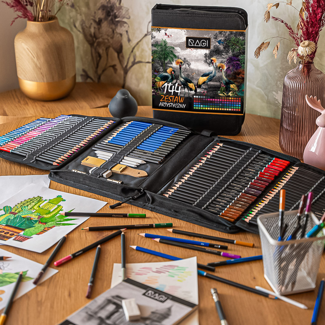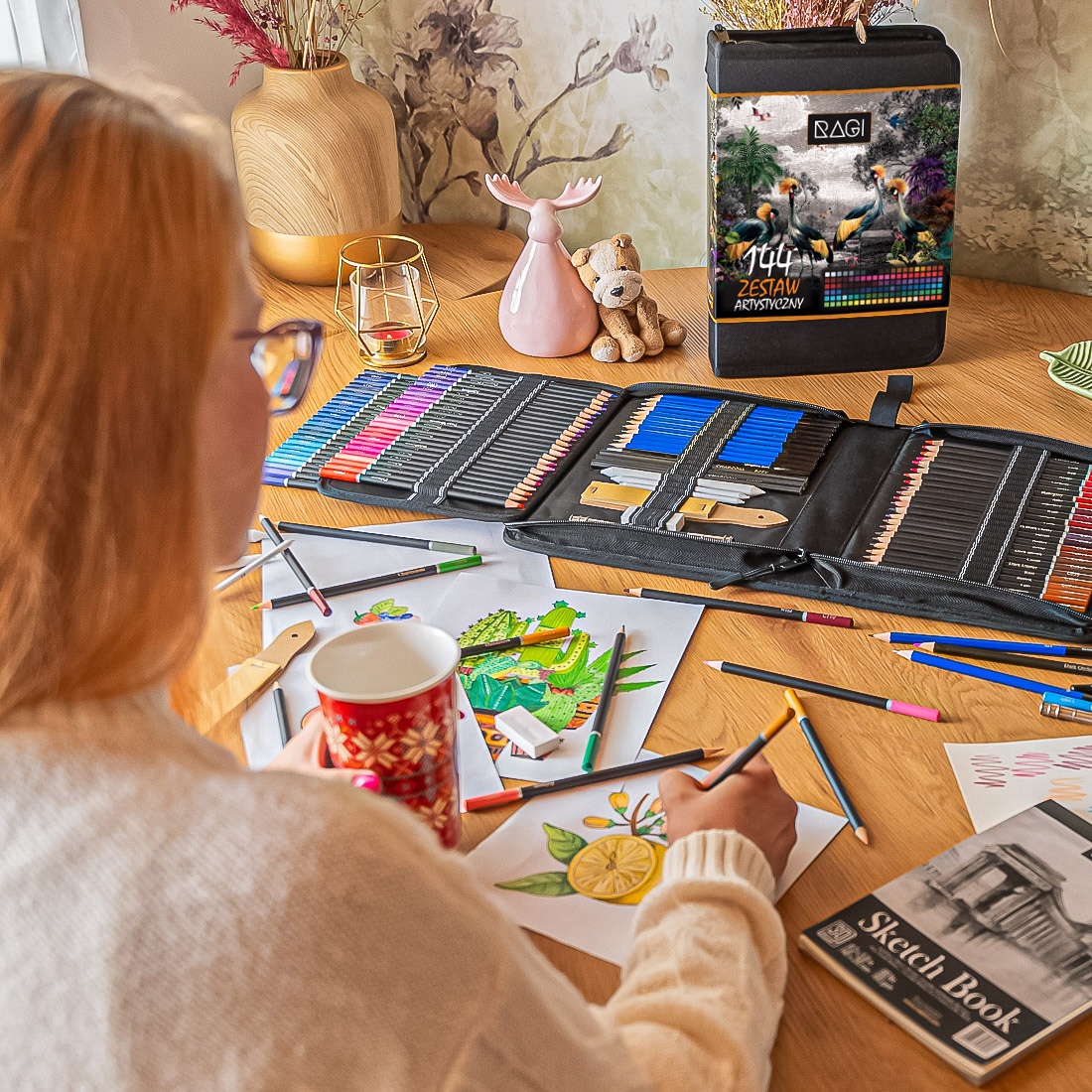 Sięgnij po zestaw artystyczny RAGI i ciesz się nieskończonymi możliwościami, jakie daje pełna paleta barw i profesjonalne narzędzia do szkicu!