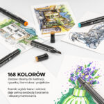 • Bogactwo Barwmarkery dla artystów, dzięki 168 różnorodnym kolorom, pozwalają na tworzenie niezwykle zróżnicowanych i szczegółowych dzieł. Użyty pigment jest odporny na światło i nie traci swojej barwy z upływem czasu, co sprawia, że markery alkoholowe zapewniają żywe kolory. Pozostają intensywne nawet po długim czasie użytkowania.