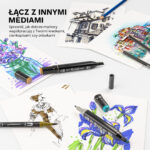 • Wszechstronneprofesjonalne markery pozwalają na wykorzystanie różnorodnych technik malarskich. Flamastry dla dzieci przydadzą się w tworzeniu prac plastycznych oraz idealnie nadadzą się do kolorowania ilustracji, mangi, komiksów oraz plakatów.