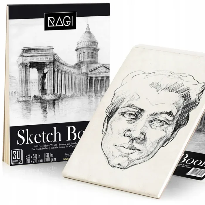 Zestaw dwóch szkicowników artystycznych A5.  2×30 kartek. Gramatura naszych szkicowników to 100 g/m2. Nadadzą się idealnie dla ucznia, studenta, artysty.