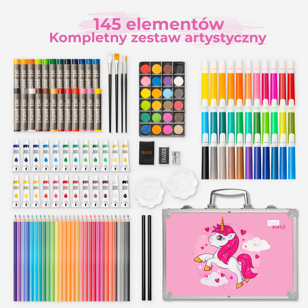 Zestaw Artystyczny dla Dzieci z motywem Jednorożca – 145 elementów