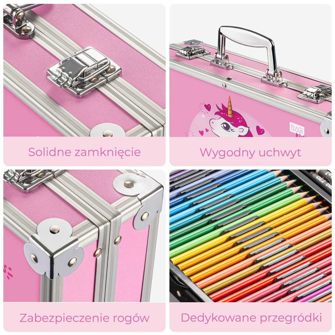 ZESTAW ARTYSTYCZNY DLA DZIECI do malowania i kolorowania w Walizce 145 elementów Różowy Jednorożec