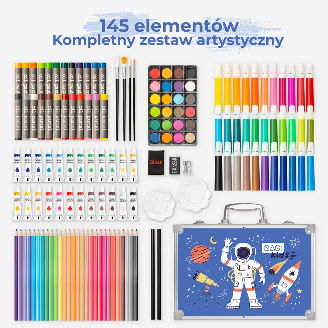 Zestaw Artystyczny dla Dzieci z Motywem Astronauty – 145 elementów