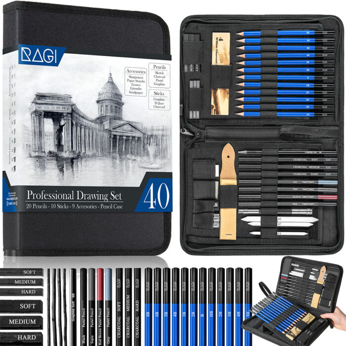 Zestaw do Szkicowania Rysowania Profesjonalny Szkicownik Ołówki 40w1 Etui