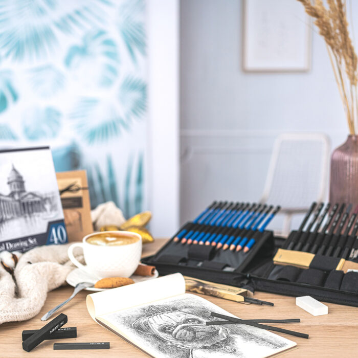 Wysokiej jakości, profesjonalny zestaw do tworzenia rysunków i szkiców, umożliwiający stosowanie różnych technik kreślarskich. Pozwoli rozwinąć umiejętności i urozmaicić spędzony czas.