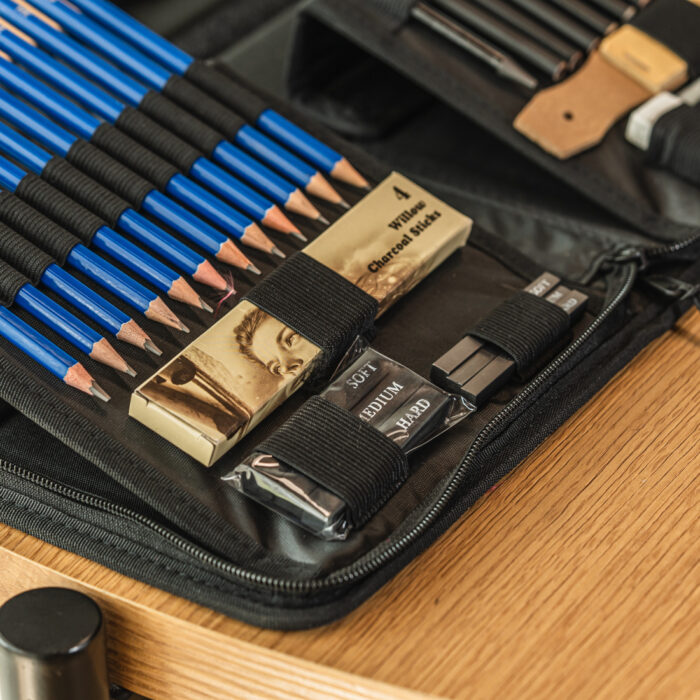 - 3 ołówki węglowe (miękki/średni/twardy)