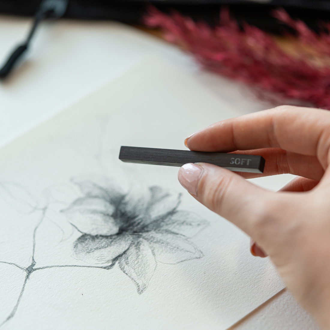 ➡️ Węgiel prasowany – Pozwala na narysowanie gładkiej i intensywnej czarnej linii