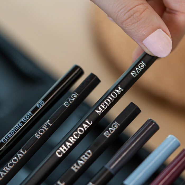 ➡️ Ołówki węglowe – Prasowany węgiel umieszczony w drewnianym trzonku, który zabezpiecza przed kruszeniem lub złamaniem